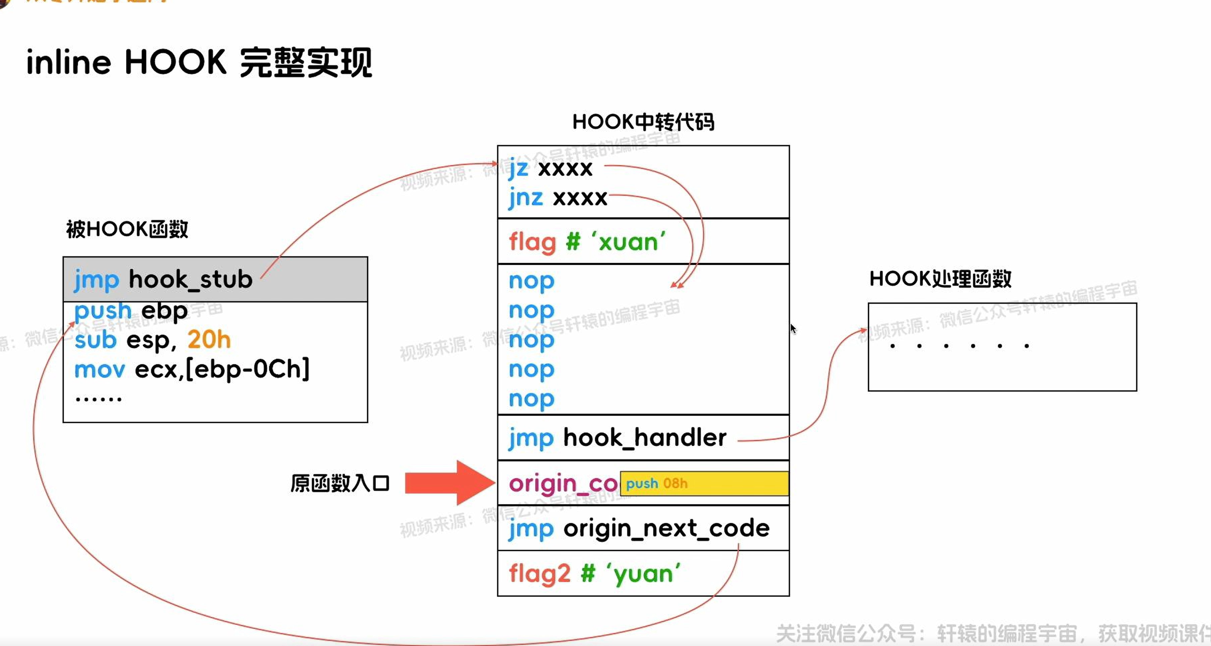 InitHookStub(m_HookStub); memcpy(m_HookStub->origin_code, TargetAddress, hook_len); *((unsigned long *)(&m_HookStub->jmp_handler[1])) = (unsigned long)HandlerAddress - ((unsigned long)&m_HookStub->jmp_handler + 5); *((unsigned long *)(&m_HookStub->jmp_origin_fun[1])) = ((unsigned long)TargetAddress + hook_len) - ((unsigned long)&m_HookStub->jmp_origin_fun + 5);
