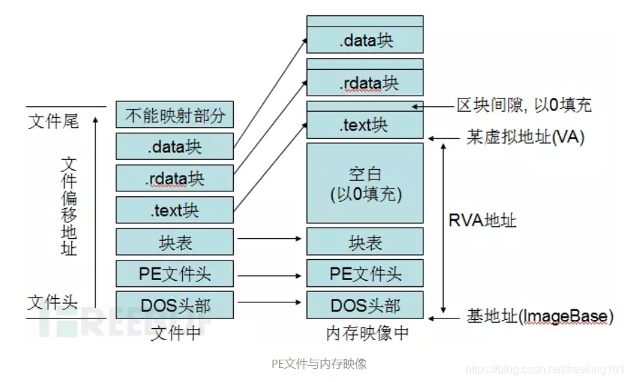 **当 PE 文件被执行时,PE 装载器会为 *进程* 分配 4GB 的 *虚拟地址空间**( Virtual address spaces 官方文档:**https://docs.microsoft.com/zh-tw/windows-hardware/drivers/gettingstarted/virtual-address-spaces\* *)*,然后把程序所占用的磁盘空间作为虚拟内存映射到这个4GB的虚拟地址空间中。一般情况下,会映射到 *虚拟地址空间* 中的 0X400000的位置。