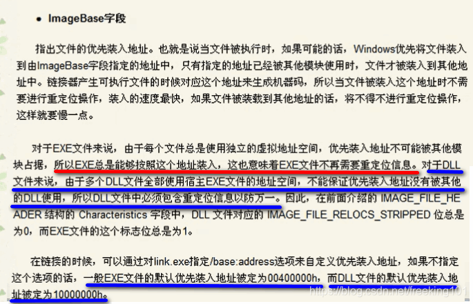 原因在于(主要是DLL)加载到进程虚拟内存的特定位置时,该位置可能已经加载了其他的 PE文件(DLL)。