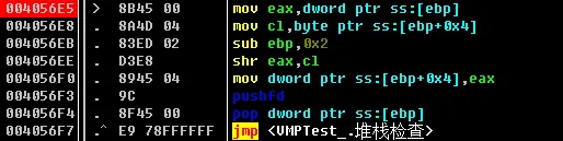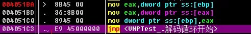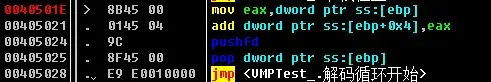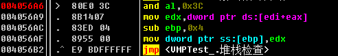 对test()函数内部代码进行VMP加密,x32dbg调试