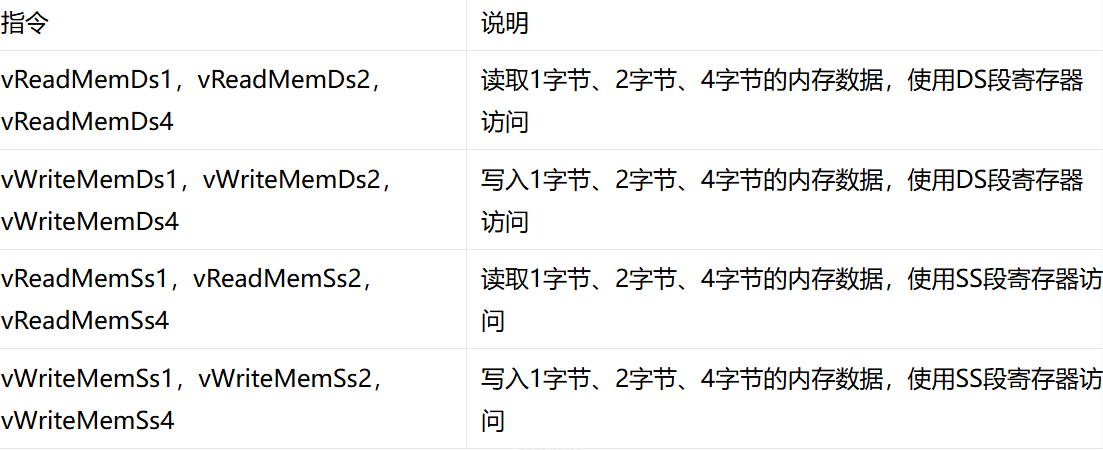 接下来这一组是内存操作相关的虚拟指令,我们看一个例子vReadMemSs4: