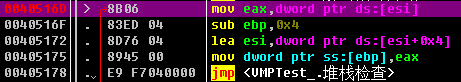 - 虚拟机的堆栈: 这个和物理机是一样的,直接在内存开辟就好。VMP还是用EBP指向栈顶
